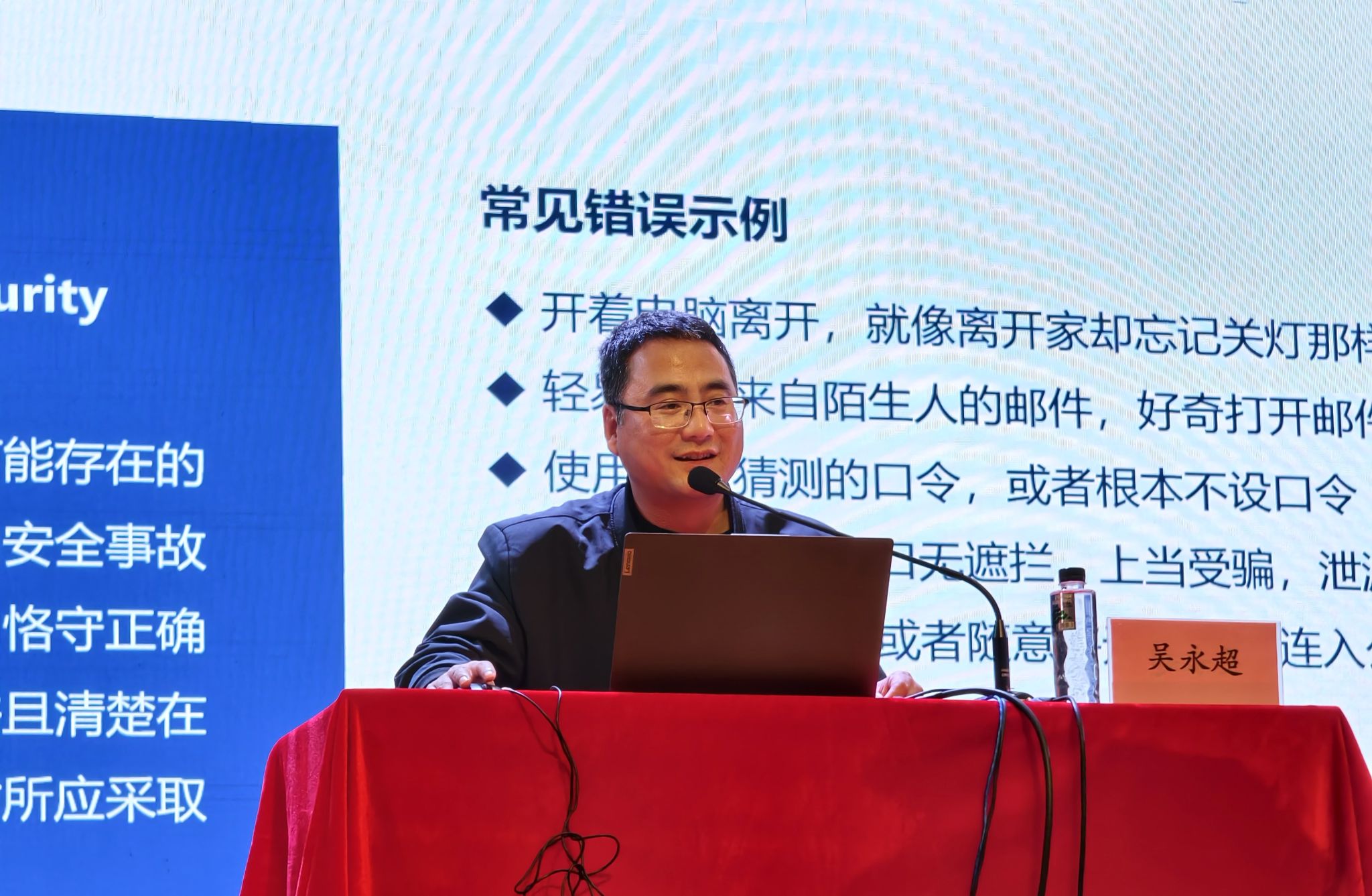 讲堂上半场,校园网络规划与运维的资深专家吴永超老师以《提高网络安全意识 筑牢网络安全底线》为题,从“网络安全源于人的弱点”这一社会工程学视角切入,系统剖析了当前面临的电信诈骗与意识形态安全挑战。通过十个真实案例,他生动展示了网络钓鱼、近源攻击等黑客入侵手法,让师生直观感受到网络安全威胁的多样性与隐蔽性。